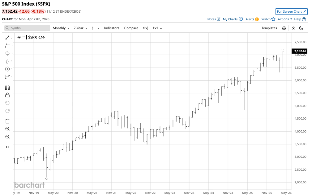 I asked if the S&P 500 could reach 10,000 in a December 30, 2025, Barchart article, concluding with the following: