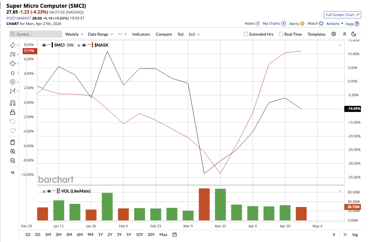 Despite the setback with Oracle, SMCI stock quickly rebounded as the broader AI demand remains strong. So far this year, SMCI stock is down 6.3%, underperforming the Nasdaq Composite Index ($NASX) gain of 6%. Here are two red flags and one green flag to consider if you are planning to add SMCI to your portfolio.