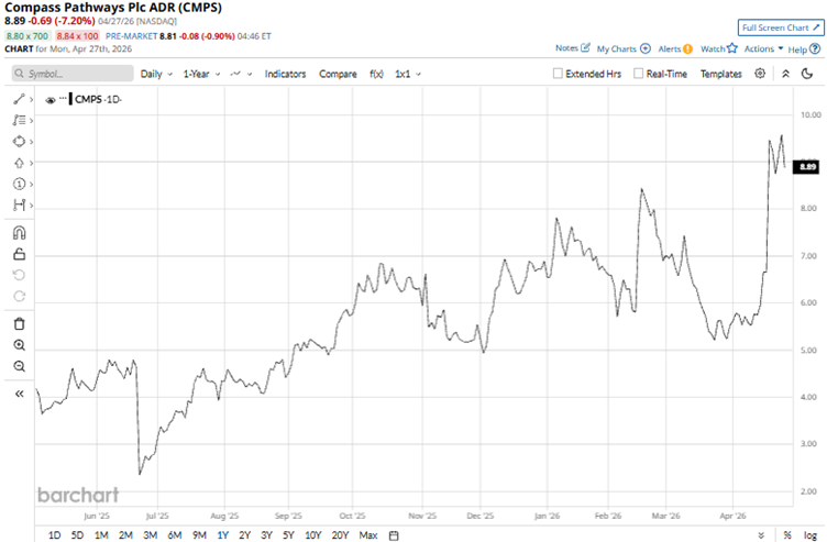 CMPS is currently in its pre-revenue stage, as it explores the effectiveness of its late-stage COMP360 psychedelic drug candidate. The company has highlighted that the drug candidate continues to achieve highly statistically significant results and clinically meaningful results for the treatment of treatment-resistant depression (TRD).