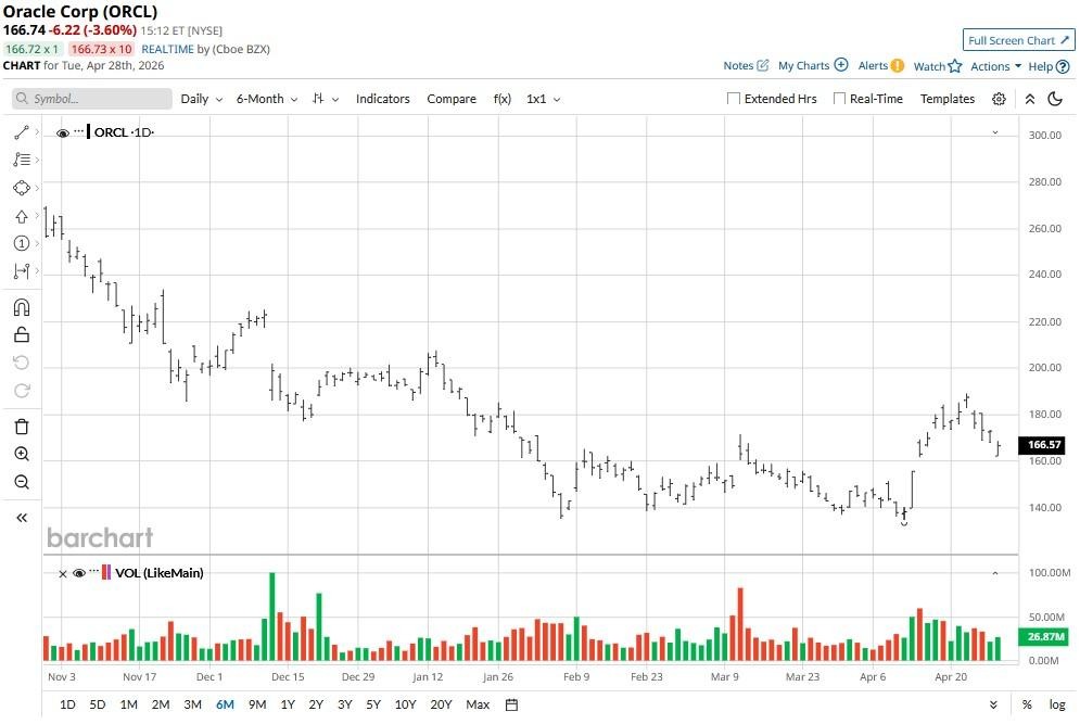 Oracle (ORCL) shares are under immense pressure on April 28 following a Wall Street Journal report that OpenAI, the company behind ChatGPT, is seeing a slowdown in revenue and user growth.