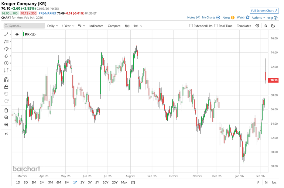 Few leadership changes move markets instantly, but The Kroger Company’s (KR) latest decision did exactly that. On Feb. 9, its stock went up 3.9% as the company announced the appointment of former Walmart (WMT) executive Greg Foran as chief executive, ending a year-long search after Rodney McMullen’s ouster last March.