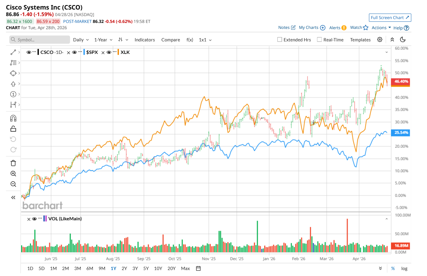 Zooming in further, this networking giant has also outpaced the Technology Select Sector SPDR ETF's (XLK) 51.7% return over the past 52 weeks and 9.6% uptick on a YTD basis.