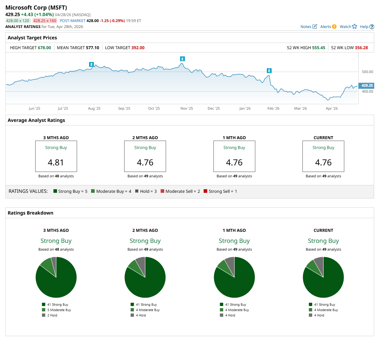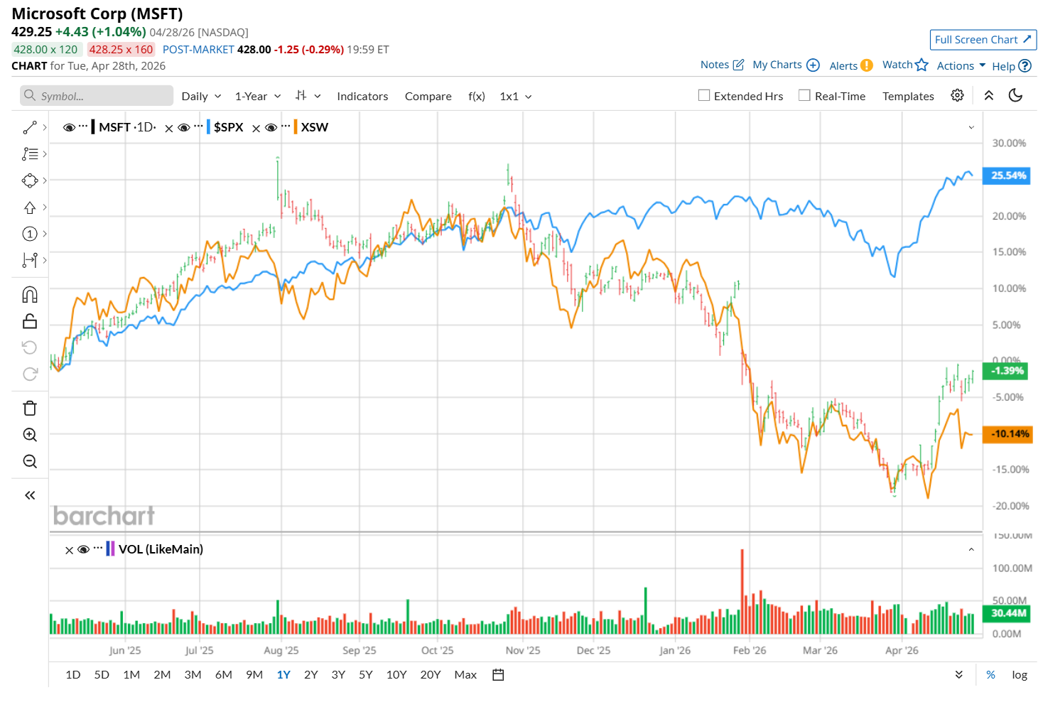 MSFT 429.25 +4.43 +1.04%