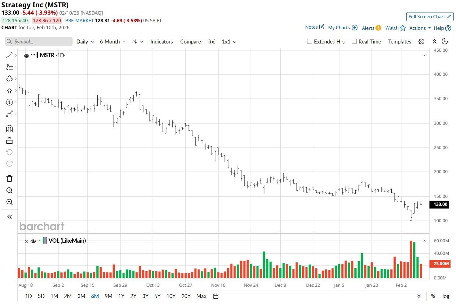 MSTR stock inched further down following Saylor’s remarks on Feb. 10, due to dilution concerns.
