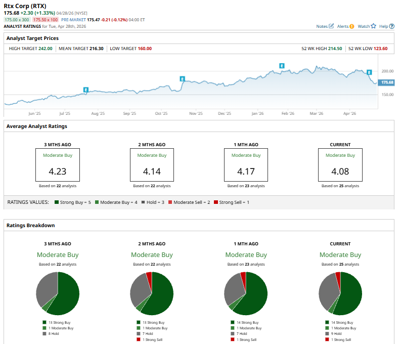 On Apr. 21, RTX delivered FY2026 Q1 earnings. Its sales improved 9% year over year to about $22.1 billion, driven by broad-based growth across all three business segments. It posted an adjusted EPS of $1.78, up 21% year over year, supported by margin expansion and higher segment operating profit. The company also generated an operating cash flow of roughly $1.9 billion and reported a robust backlog of $271 billion, underscoring strong demand across both commercial aerospace and defense markets. Despite solid results, its shares dipped 4.4% amid risks tied to Pratt & Whitney’s GTF engine issues, particularly aircraft-on-ground concerns, ongoing supply chain constraints and cost pressures across the aerospace sector.