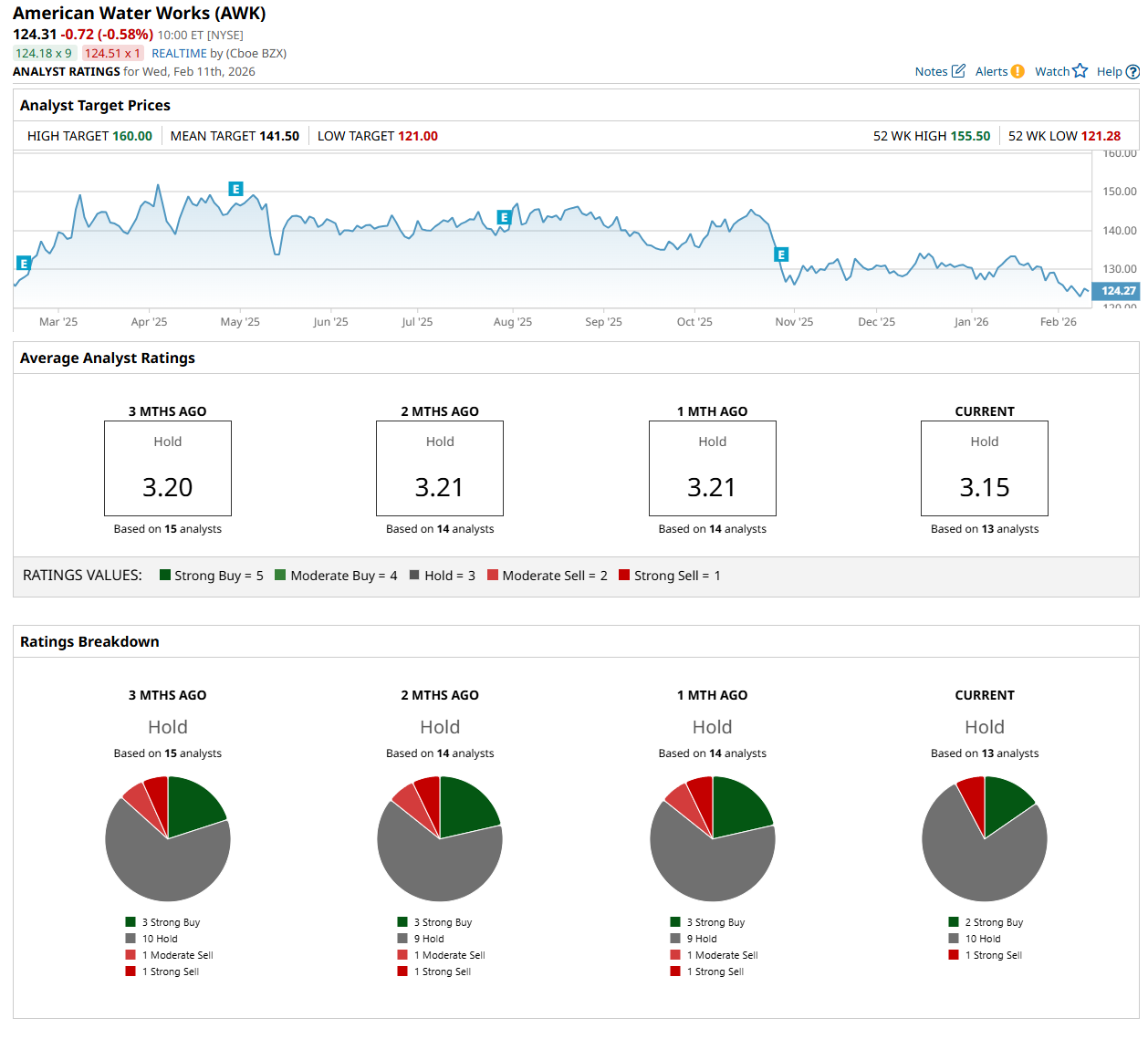 On Jan. 22, Nicholas Campanella from Barclays PLC (BCS) maintained a “Sell" rating on AWK, with a price target of $122.