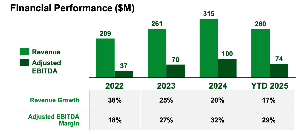 When it went public in 20o5, it had annual revenue of $227.1 million. In the 12 months ended Sept. 30, 2025, it was $2.4 billion, a compound annual growth rate (CAGR) of 12.5%.