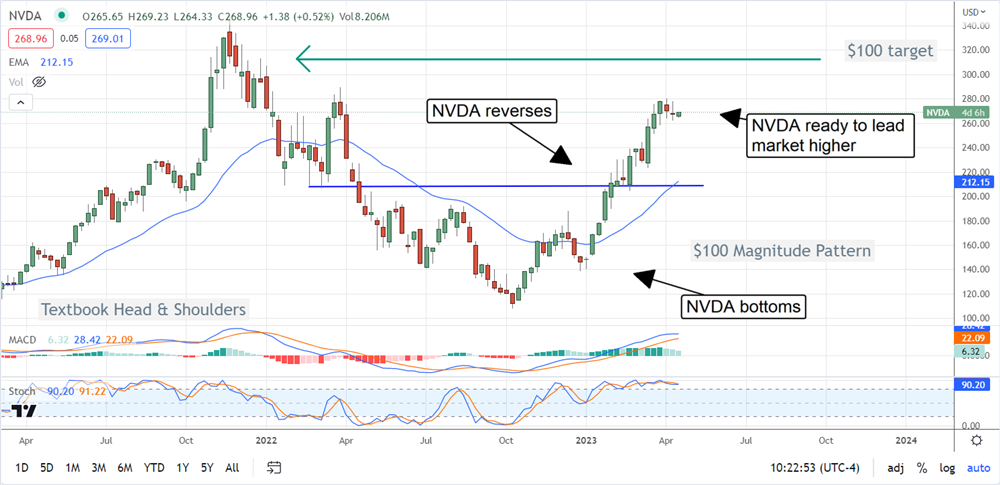 The takeaway is the price target is trending solidly higher compared to last month and last quarter, and the most recent targets have the stock trading about 15% higher than recent action, given the proper catalyst, that puts the stock shy of all-time high levels but on track to hit new highs. That catalyst could be guidance or analysts. NVIDIA reports at the end of May. Wells Fargo rates NVIDIA at Overweight with a price target of $320 compared to the consensus of $262.