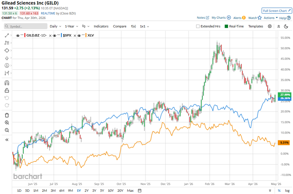 Looking closer, shares of Gilead Sciences have outperformed the State Street Health Care Select Sector SPDR ETF's (XLV) 2.6% rise over the past 52 weeks.