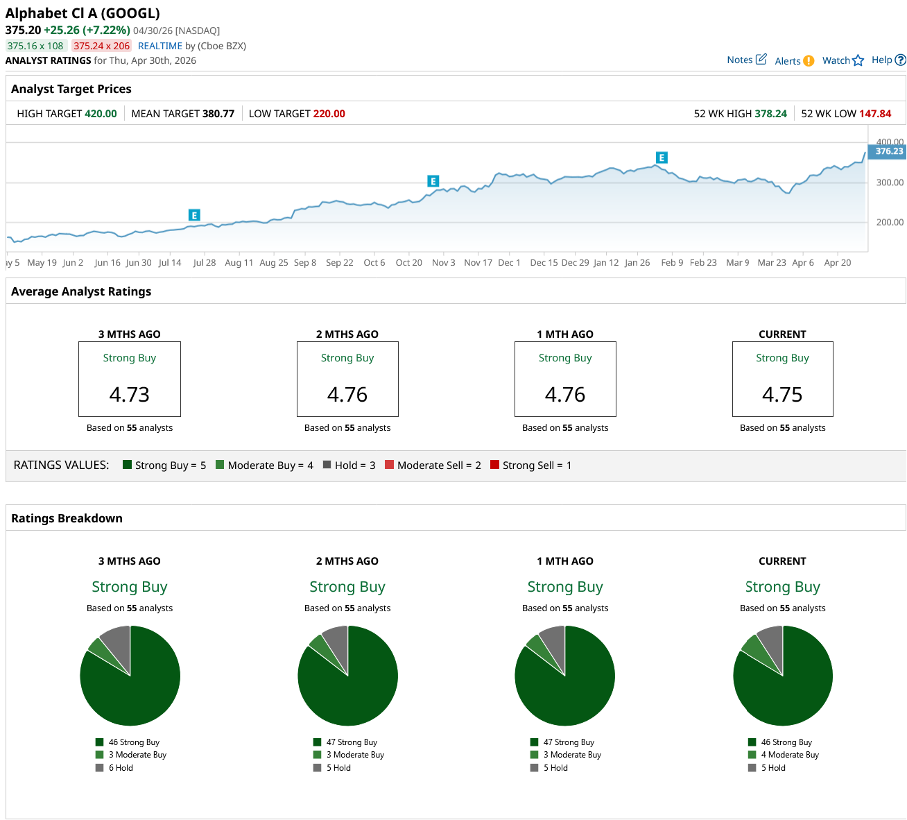 Analysts are upbeat and likely to raise their earnings forecast and price target following Q1 earnings. At the same time, GOOGL stock has a consensus “Strong Buy” rating.