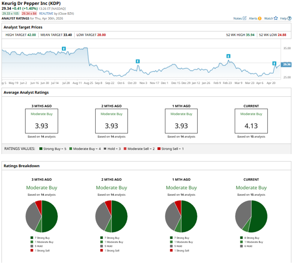 On Apr. 27, Barclays raised its price target on Keurig Dr Pepper to $30 while maintaining an “Equal Weight” rating.
