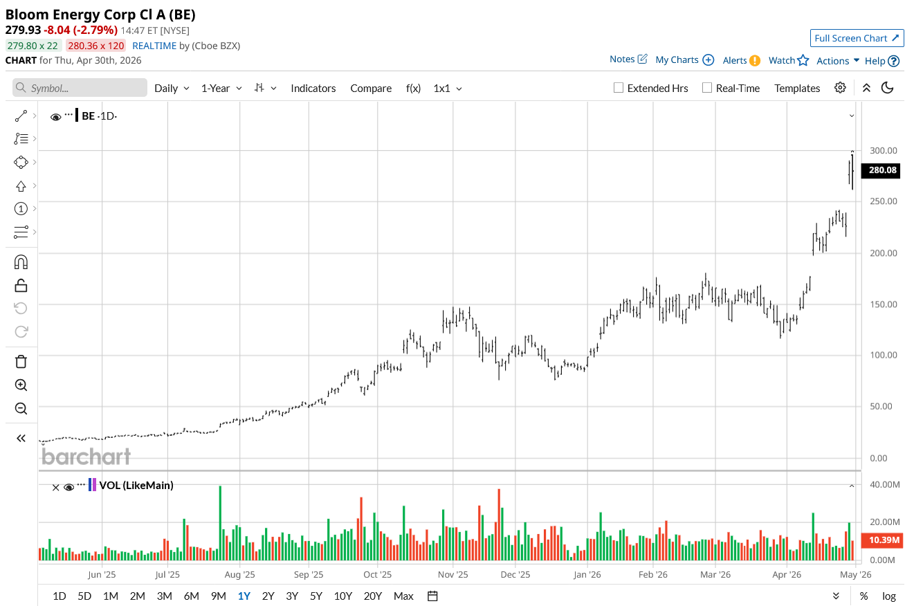It has been a remarkable ride. Shares of BE rose by 27.2% yesterday and are approaching their all-time highs of $290.50 per share. Year-to-date (YTD), shares of BE gained 223%, which means the stock has outperformed the S&P 500 Index ($SPX) dramatically.