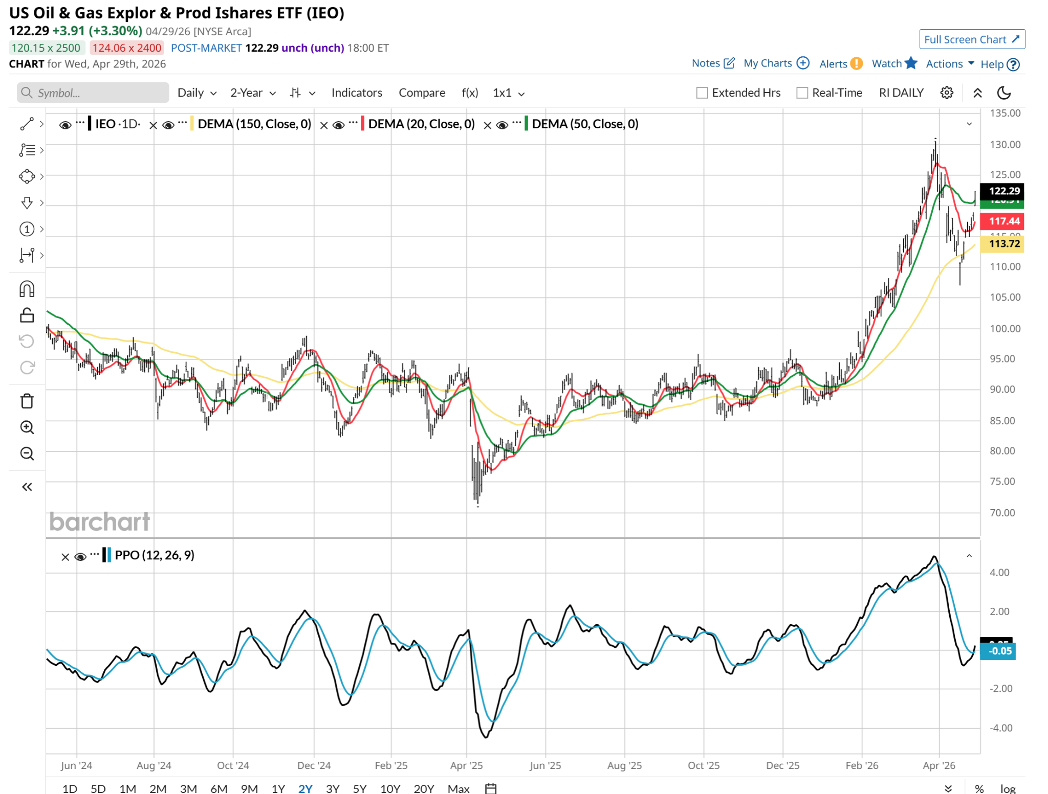 Finally, for the more adventurous energy player, there’s the iShares US Oil & Gas Exploration & Production ETF (IEO). It owns exploration and production stocks, the ones with some kick to them. Or bite, on the downside. This is the most speculative aspect of the energy business.