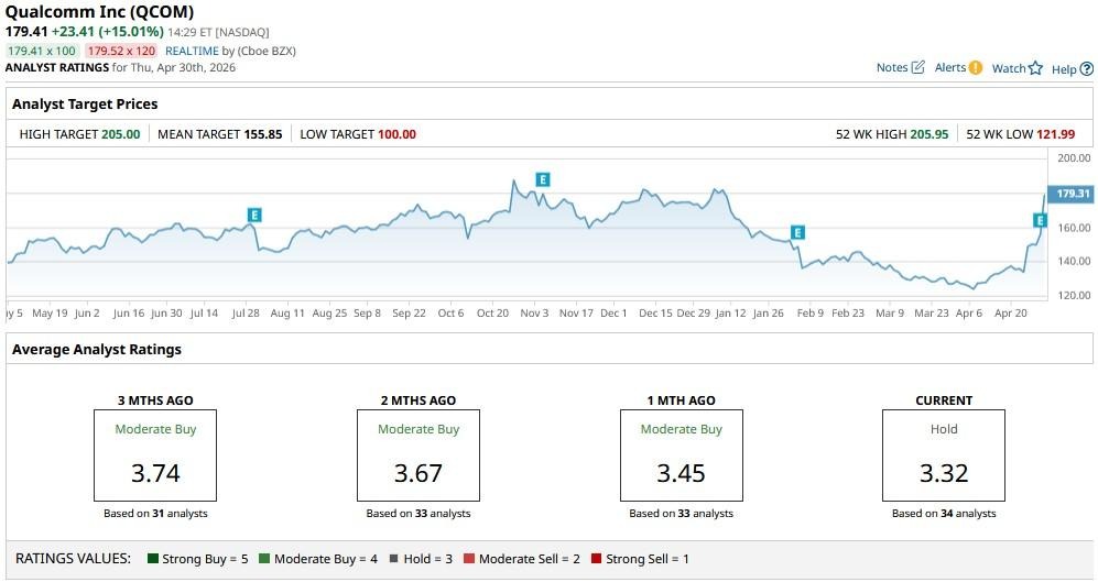 While the consensus rating sits at “Hold," price targets on Qualcomm go as high as $205 currently, indicating potential upside of nearly 14% from here.