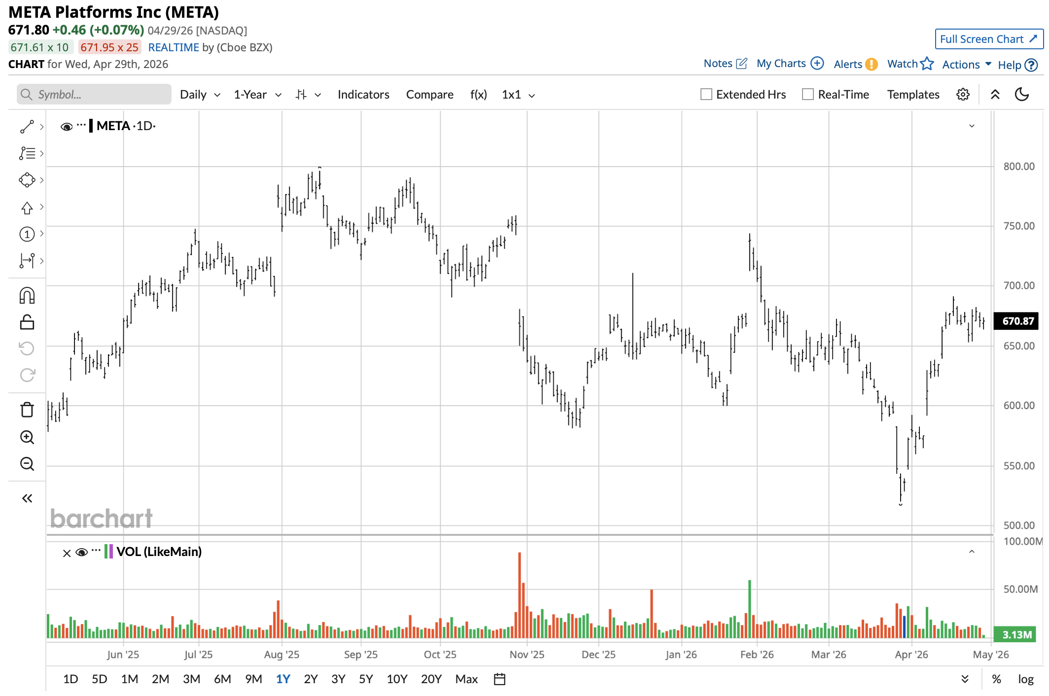 Even after the capex news and the company's Manus setback, META stock still earns a consensus “Strong Buy” rating among analysts. The highest target for META stock stands at $1,015, while the lowest target sits at $676. The mean target price of $853.87 implies potential upside of about 40% based on current levels. That should help investors feel more confident about the stock, even though the company had to abandon its acquisiton and shares are trending downward following the Q1 report.