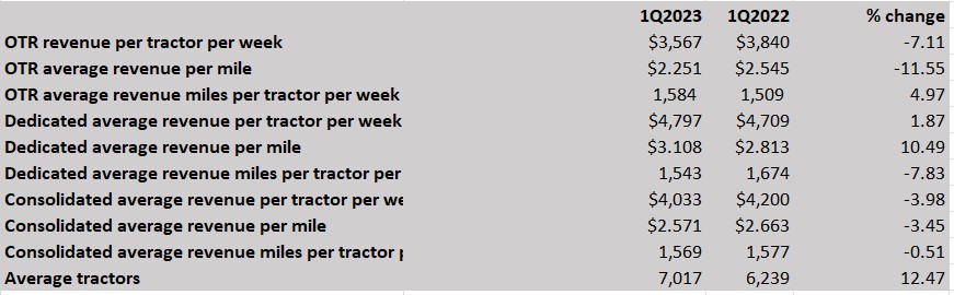That tough freight market was evident in the earnings filed Wednesday as a 10-Q report with the SEC. With the pending merger with Knight-Swift, no first-quarter earnings news release was issued, nor was there a call with analysts, which is the norm for companies about to be acquired. (For example, TravelCenters of America did not have an earnings call as it prepares to be absorbed into BP.)