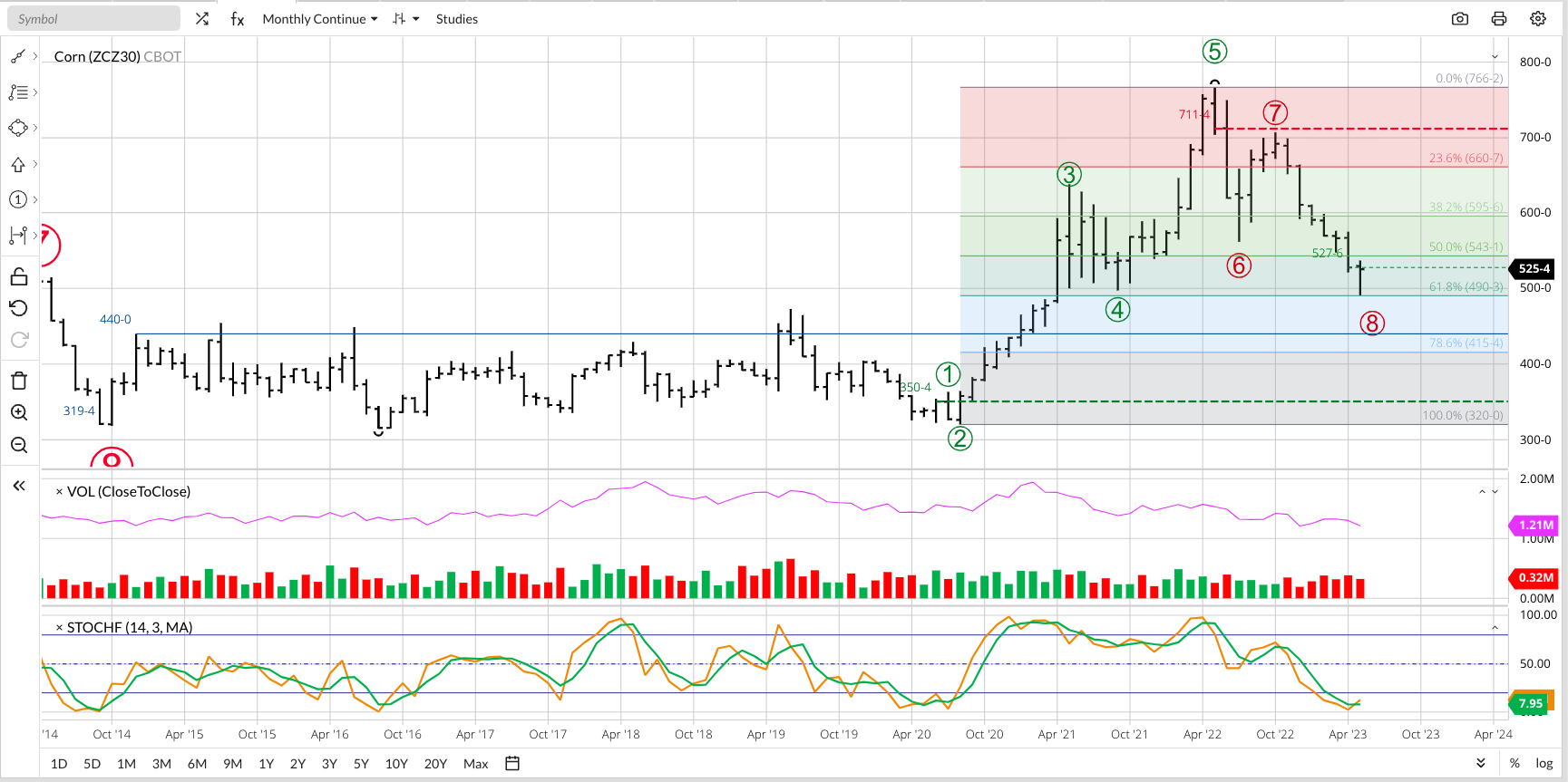 The corn market has had an interesting month of May with the Dec23 issue initially rallying above the April settlement of $5.2725 before falling to a low of $4.9075 on May 18. Since then, though, the contract has gained some upside momentum due to forecasts calling for a warmer and drier month of June across the US Midwest growing area. Heading into Friday’s session, Dec23 (ZCZ23) was priced near $5.25. What do we know about the 2023-2024 corn market?