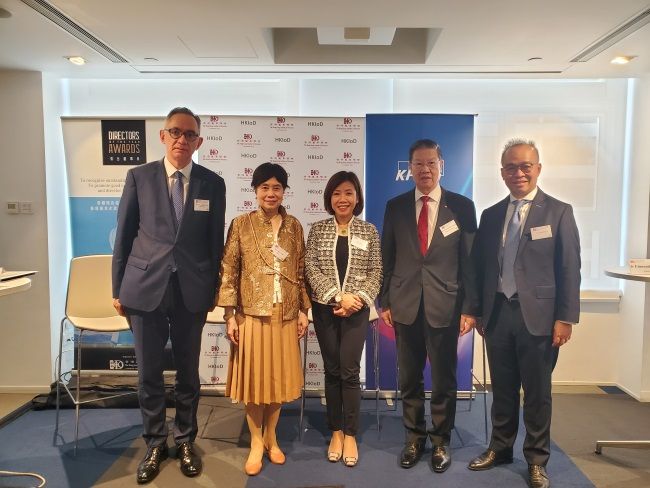 | From left to right: Dr Christopher To, Dr Carlye Tsui, Ms Alice Yip, Ir Edmund K H Leung and Mr Vincent Chan provide an overview of the Directors Of The Year Awards 2023 during the briefing session. |