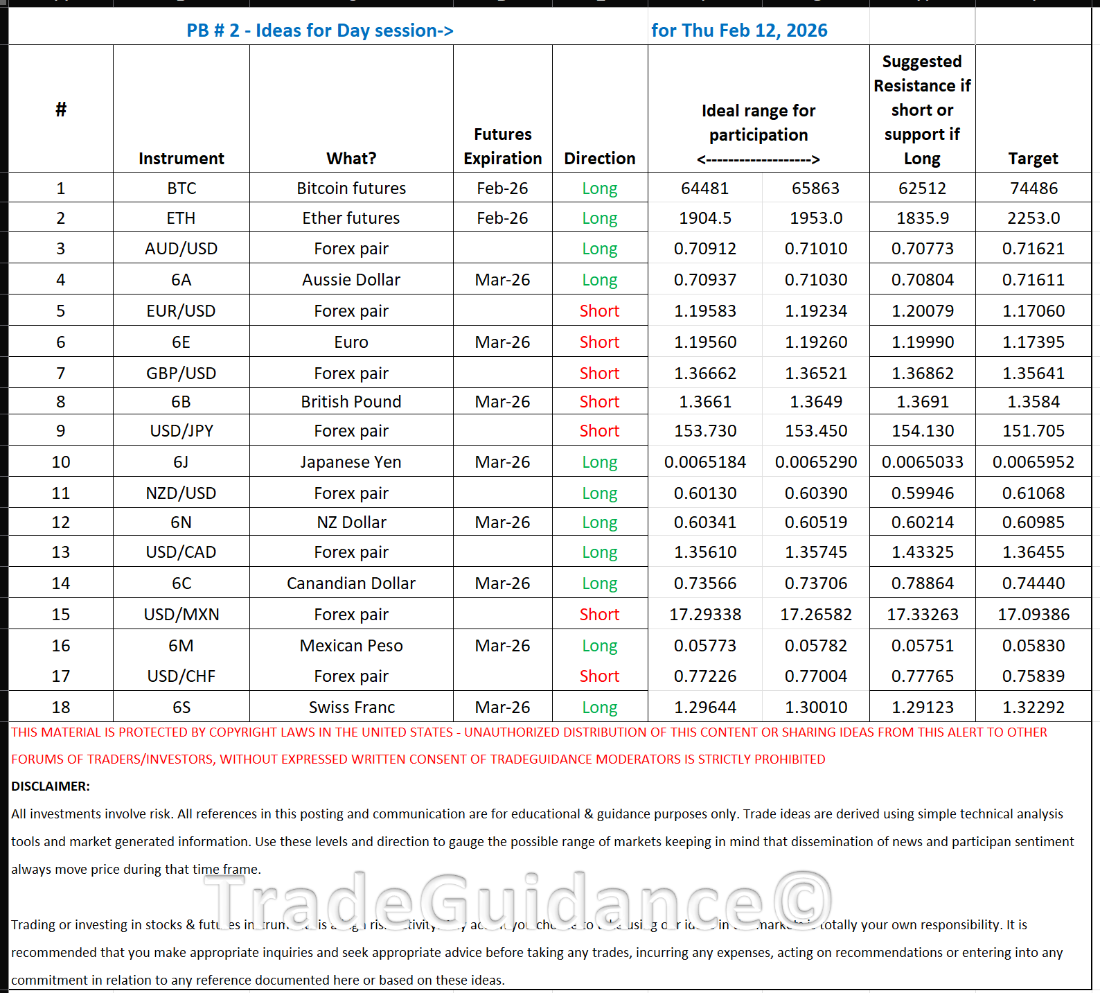 Here is our intraday playbook for Thursday Feb 12, 2026. Trade these setups with confidence that we use our best judgment to measure so trading with the stated risk stops and of course aligning with your own personal risk tolerance is essential.
