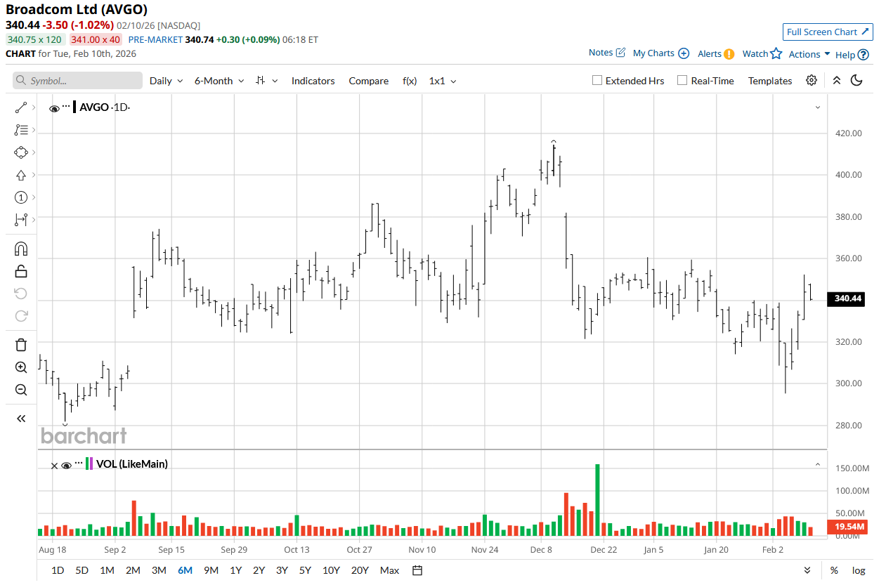 Less than two weeks ago, Broadcom was upgraded from “Peerperform” to “Outperform” at Wolfe Research, which also raised its price target to $400. However, the rest of Wall Street is even more bullish, with the mean target price at $453.77, reflecting upside of 32.4% from here.
