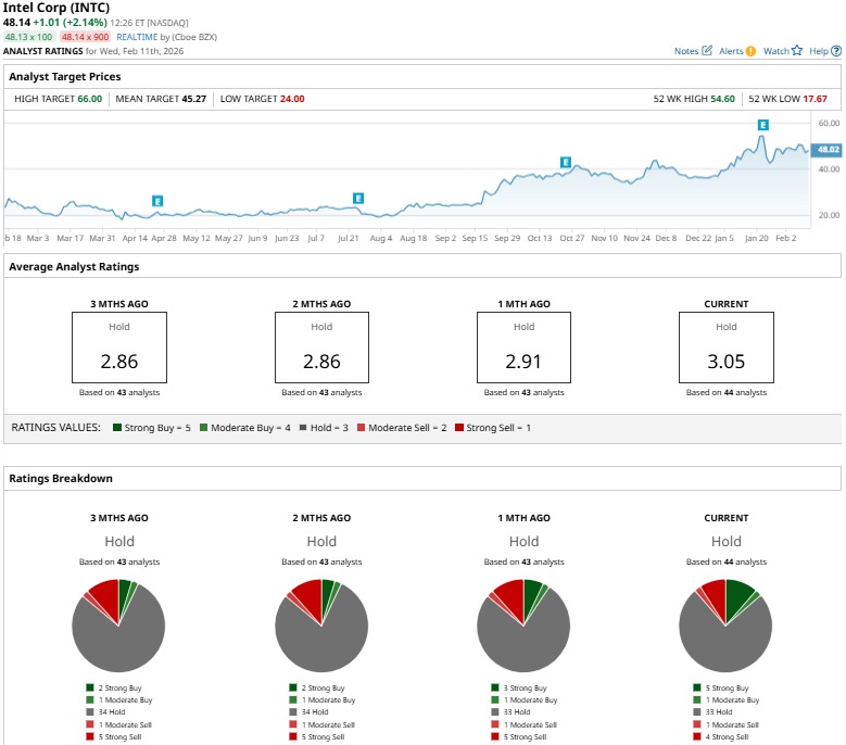 At a market value of roughly $250.9 billion, INTC currently trades at $48.08 as of Feb. 11, up 30.29% year‑to‑date (YTD) and 129.27% over the past 52 weeks.