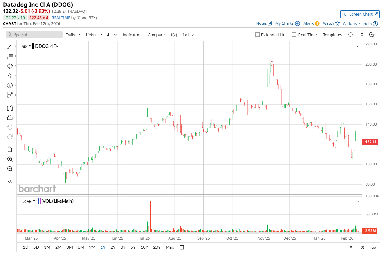 Datadog (DDOG) is up 15% over the past five days. On Tuesday, the company delivered solid Q4 and full-year 2025 earnings, paired with an upbeat outlook for 2026. Investors cheered the results, sending the stock up nearly 14% on Tuesday. While DDOG has pulled back slightly since then, optimism continues to surround the cloud company.