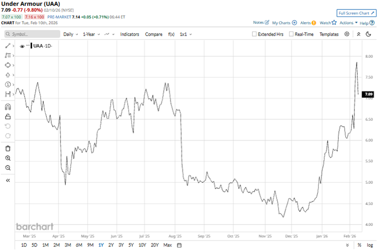 Similarly, analyst Cristina Fernandez of Telsey Advisory Group raised the stock’s price target from $5 to $6. However, the rating for Under Armour is maintained at “Market Perform.” Barclays analysts also maintained an “Equal Weight” rating but raised the price target from $5 to $8. While analysts at the firm acknowledged that Under Armour’s fiscal 2026 guidance for sales and EBIT is at the high end of prior ranges, its turnaround remains a work in progress.