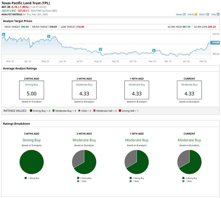This month, Texas Capital Securities reaffirmed its “Buy” rating on TPL and maintained a $390 price target, citing reports of potential data center development as a key growth catalyst.