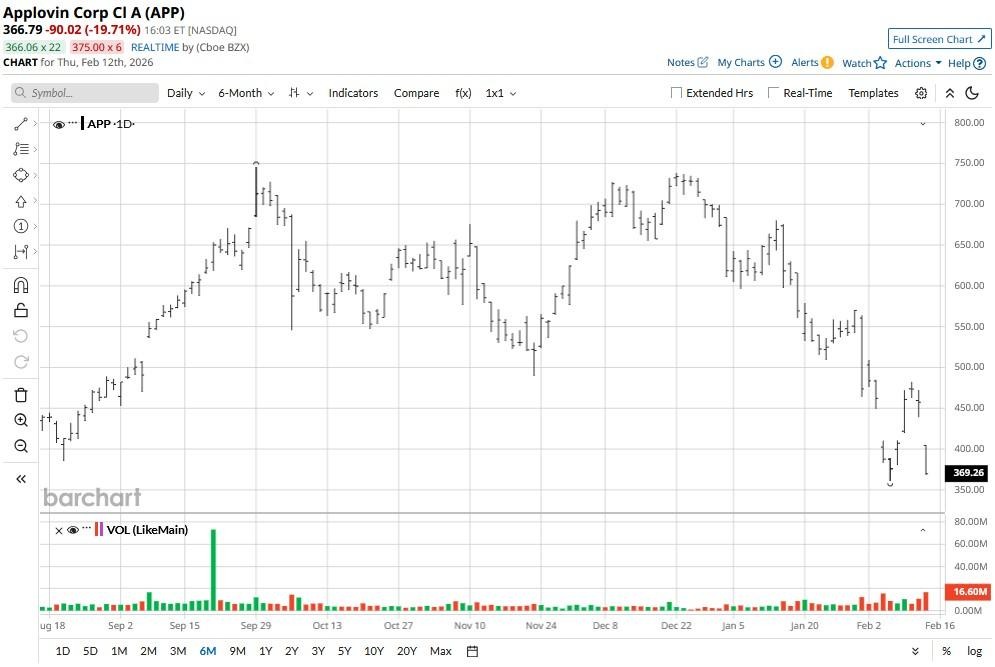 AppLovin (APP) shares plummeted nearly 20% today as valuation and artificial intelligence (AI) disruption fears overshadowed the ad-tech firm’s exceptionally strong Q4 release.