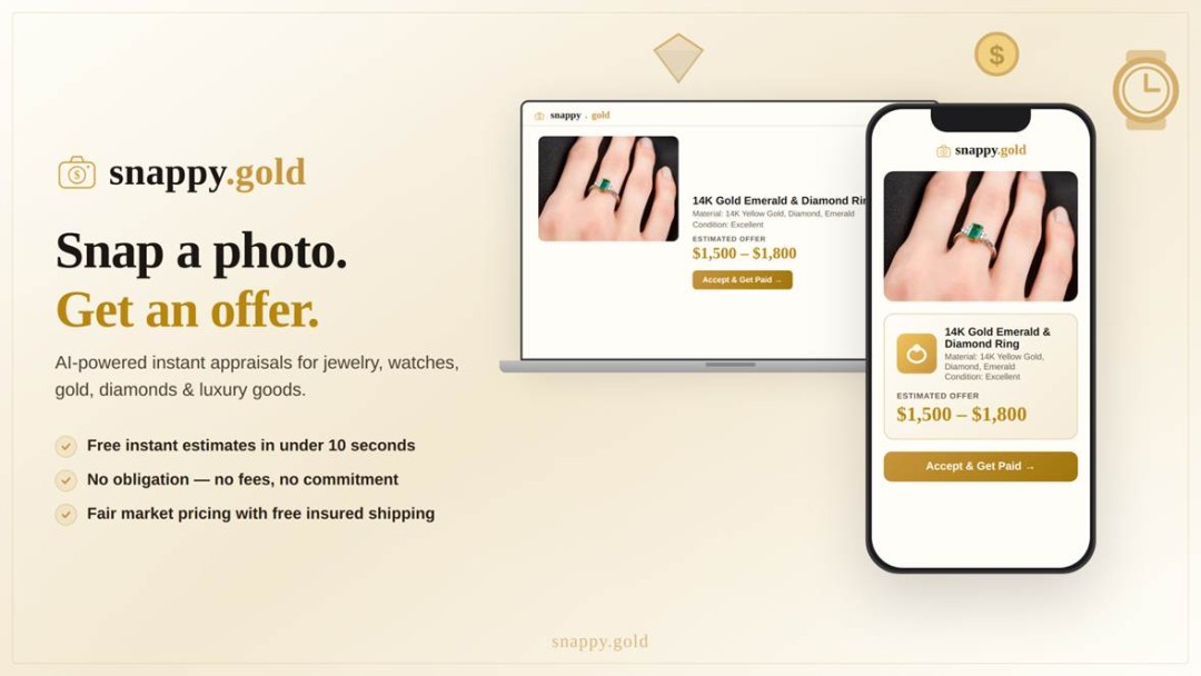 "People have thousands of dollars in jewelry sitting in drawers because they have no idea what it's worth or how to sell it," said the founder of Snappy.gold. "We wanted to make it as simple as taking a photo. You snap a picture, our AI identifies the item, estimates the market value, and we make you a real offer. The whole process takes less than a minute."