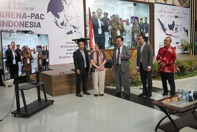 The ceremony also connected to a remote venue in Keio University, Japan, using an uncompressed 8K video conference, marking the first such ultra-high resolution video conference in Indonesia, and demonstrating the high capacity and low latency of the research and education network that spans across the Pacific.