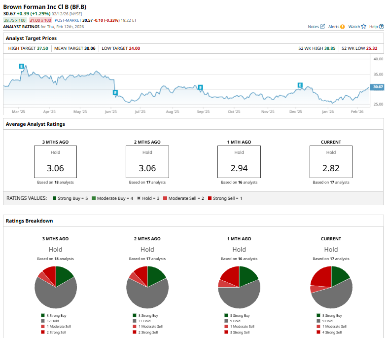 On Jan. 20, BNP Paribas Exane downgraded the spirits and wine company to “Underperform” from “Neutral” and cut its price target to $24 from $31, signaling a more cautious view on the company’s outlook.