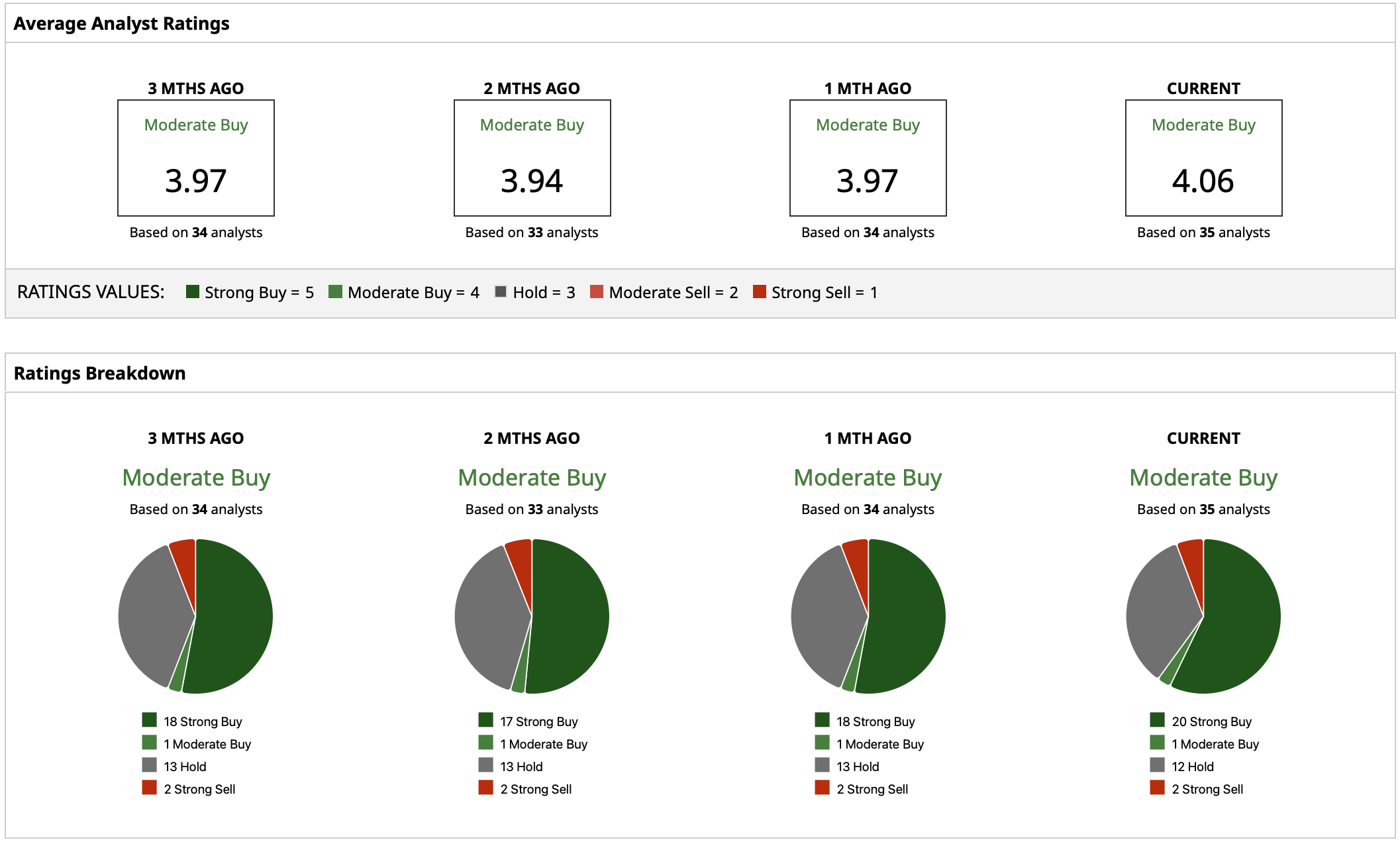 Despite the recent drawdown in COIN stock, there is a bullish sentiment about Coinbase among analysts. Coinbase stock has a “Moderate Buy” consesus rating based on 35 analysts with coverage. The mean target price for the stock stands at $345.49, indicating potential upside of approximately 92% from current levels. The highest target price stands at $505, while the lowest target price stands at $190, which is only slightly above recent price levels.