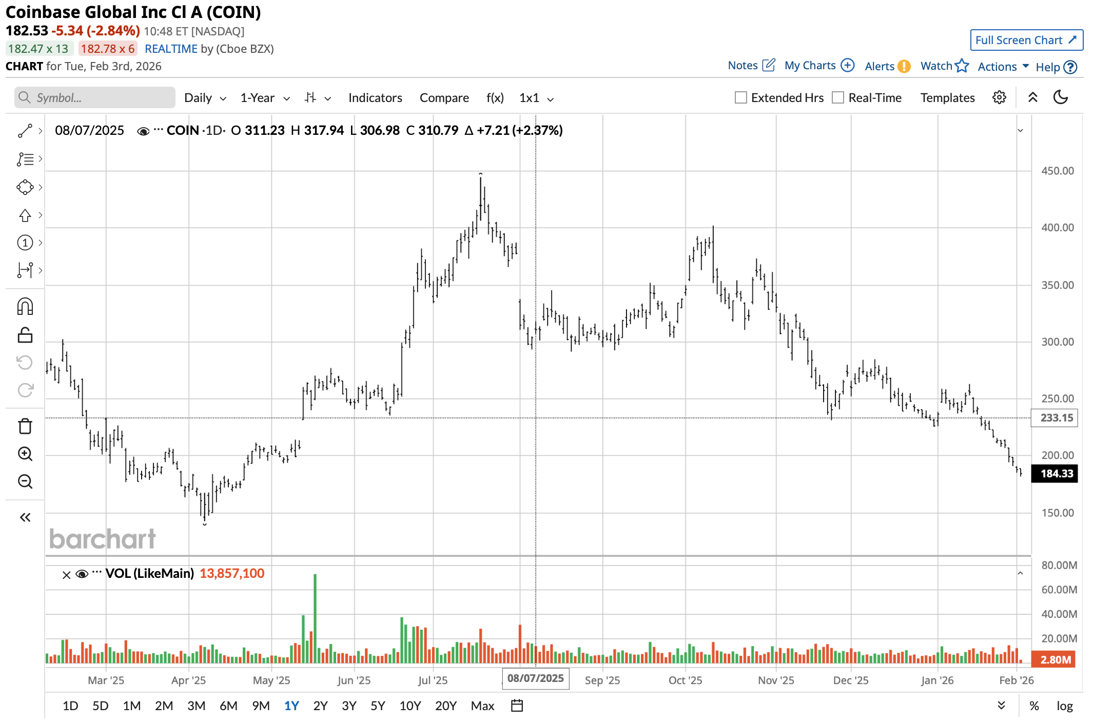 With shares down 46% after a rough past three months, Coinbase Global (COIN) is once again testing the resolve of investors. While COIN stock reached an all-time high of more than $444 within the last year, shares are now trading as low as the $179 mark. This decline has been due to a sharp drop in crypto prices as well as the overall risk-off environment for high-beta assets.