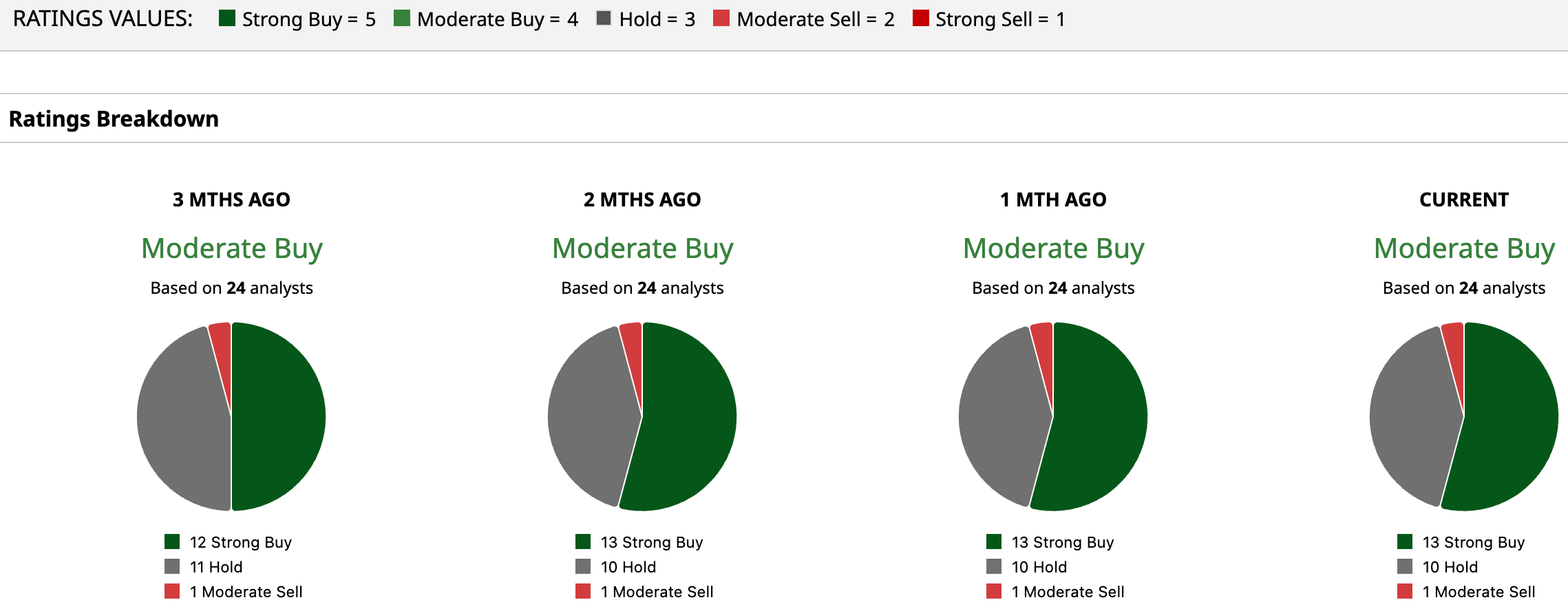 Honeywell is considered an industrial stalwart on Wall Street, with analysts awarding it a consensus “Moderate Buy” rating overall. Of the 23 analysts rating the stock, 11 analysts have rated it a “Strong Buy,” one analyst suggests a “Moderate Buy,” 10 analysts gave a “Hold” rating, and one analyst gave a “Moderate Sell” rating.