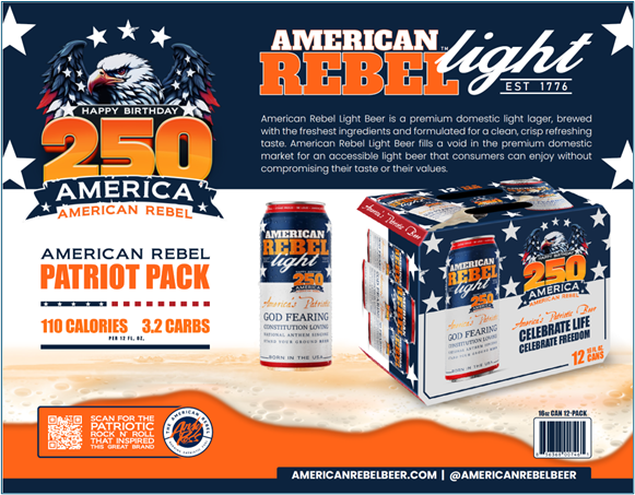 With the introduction and rapid growth of American Rebel Light Beer—America’s Patriotic, God-Fearing, Constitution-Loving, National Anthem-Singing, Stand-Your-Ground Beer—the Company continues to execute its distribution-first growth strategy across the United States and is leveraging its brand position as “America’s Patriotic Brand™ to build a scalable national platform across multiple consumer categories.