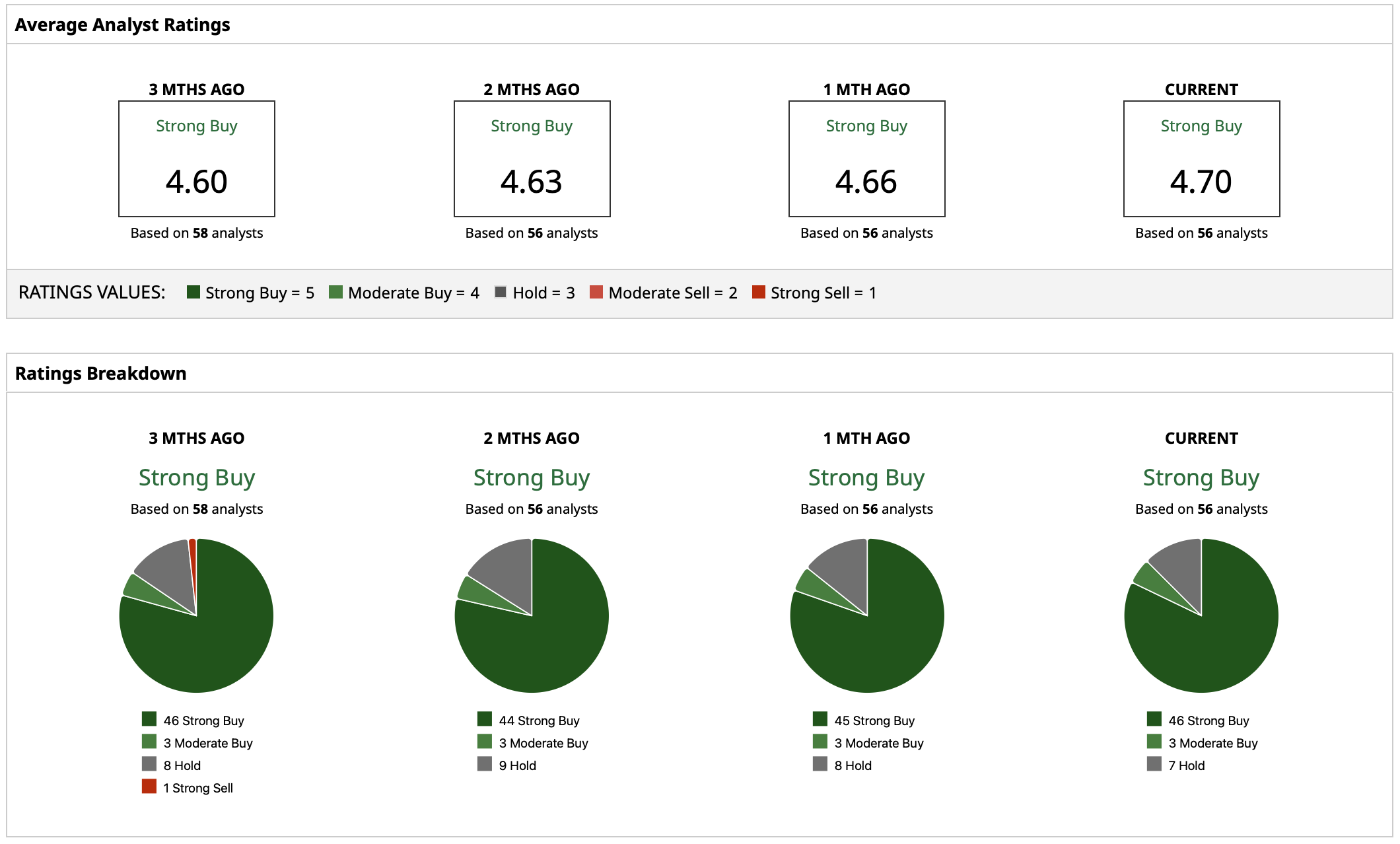 Analysts assign a “Strong Buy” consensus rating on META stock with a mean price target at $855.88, indicating a potential increase of 23% from the current price. The high price target for META is $1,144 while the lowest target price is $700, showing a wide range of price targets.