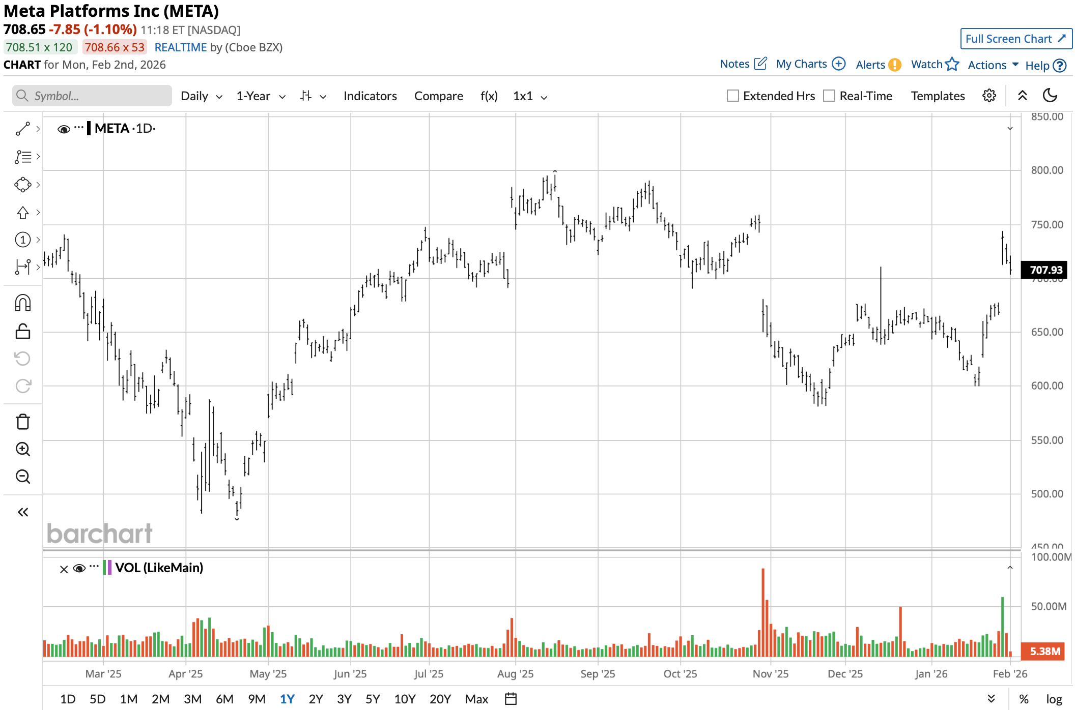 Over the last 52 weeks, the stock has traded between a low of $479.80 and a high of $796.25. This is a reflection of its strong earnings momentum and the volatility of the stock related to the investing cycles of artificial intelligence. META stock is currently trading at $697 and has outperformed the S&P 500 Index ($SPX). Investors have clearly rewarded the company for the acceleration of its growth after the efficiency reset of 2022 to 2023.