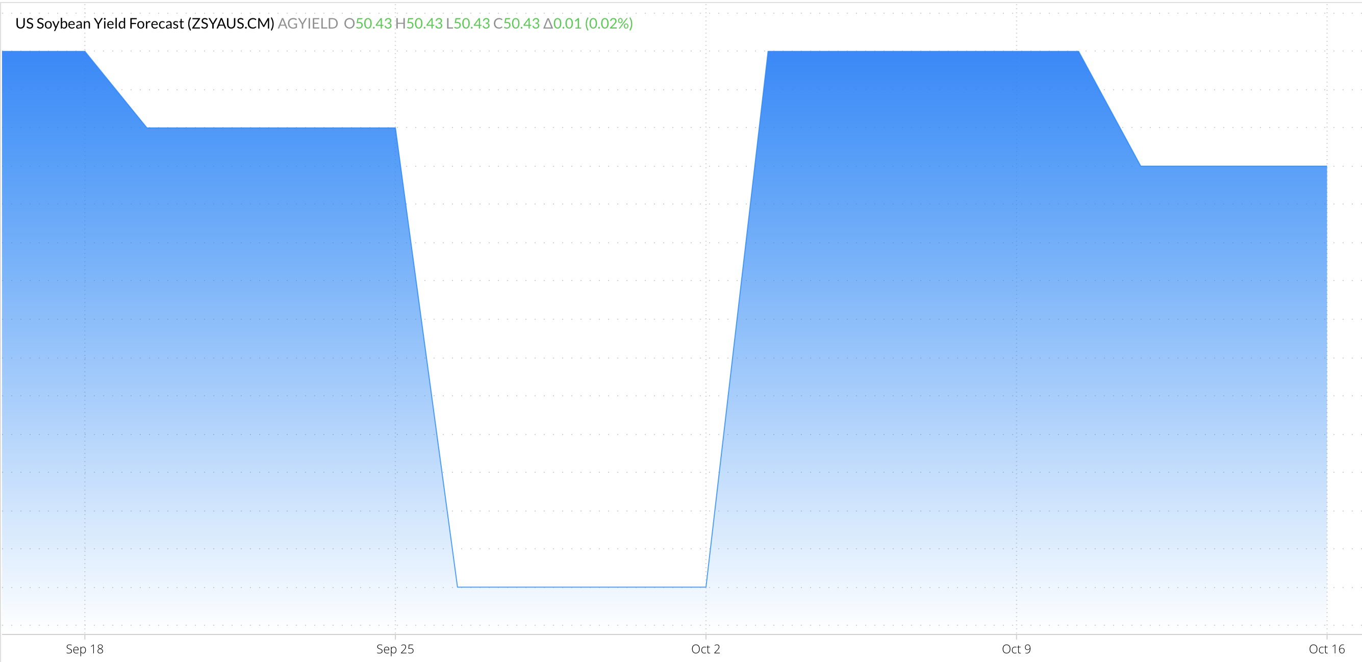 The latest report sees end-of-season yield at 50.4 (bu/ac) for soybeans, which is .8 (bu/ac) below the USDA's most recent forecast. According to the USDA, 97% of soybeans in the top 18 soybean-growing states are dropping leaves, up from 93% the previous week and ahead of the five-year average of 93%.