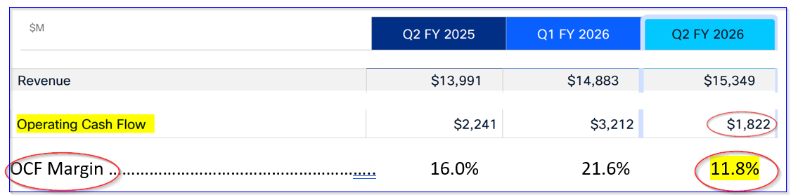 Nevertheless, that still represented 11.8% of its quarterly revenue, albeit lower than last year's 16 OCF margin and 21.% in the prior quarter. This can be seen on page 17 of its slide deck: