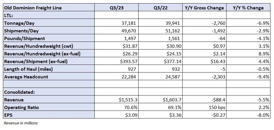The post Old Dominion holds Yellow volume bump in Q3 appeared first on FreightWaves.