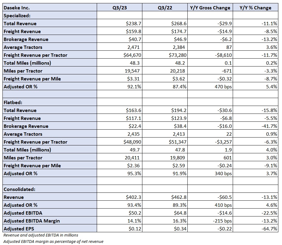 The flatbed segment posted a 95.3% adjusted OR, 340 bps worse y/y but only 20 bps worse than the second-quarter result.