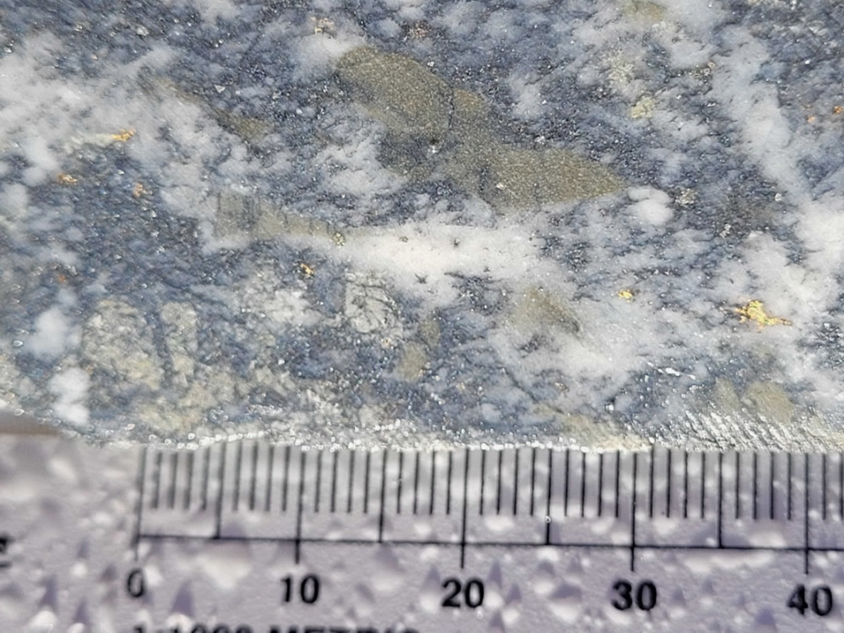 - 0.5 m @ 1,497.4 g/t AuEq (1490.0 g/t Au, 4.7% Sb) from 438.8 m