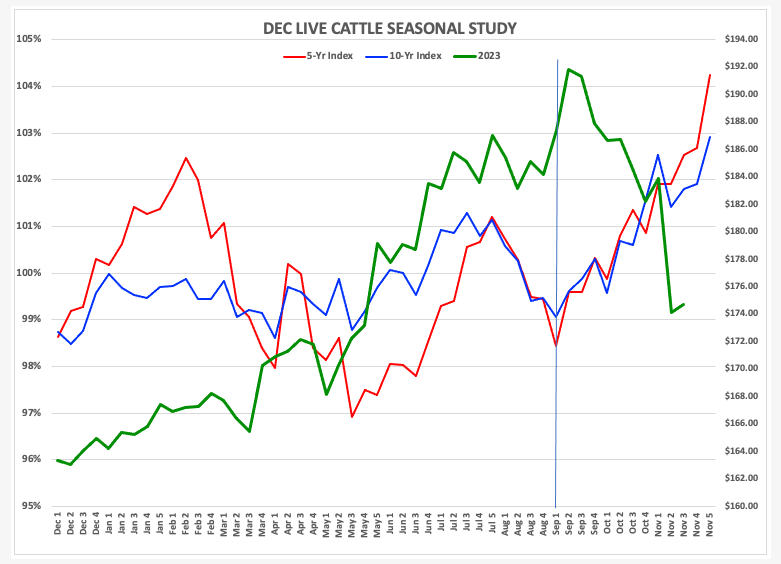 - Dec live cattle tends to post a secondary low weekly close the first week of September.