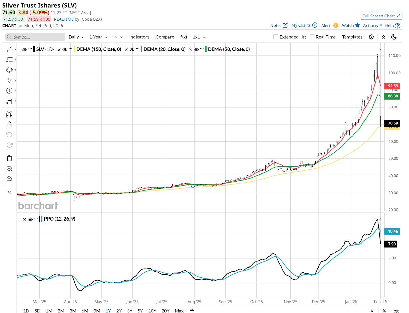 In a matter of 48 hours, the silver rush of 2026 went south. The metal plunged nearly 33% from its historic peak of $121 to a low of $76 on Jan. 30. This was the most violent single-day drop since 1980, and it exposed the fragile nature of any trade built on pure momentum.