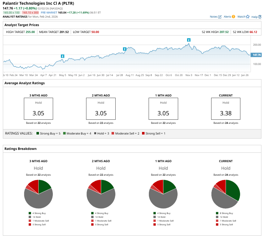 Despite these positives, Wall Street analysts still maintain a “Hold” consensus rating on PLTR stock, reflecting a more cautious outlook. However, if Palantir can sustain impressive growth and continue to improve profitability, investor confidence could strengthen significantly. In that scenario, the stock could hit $255.