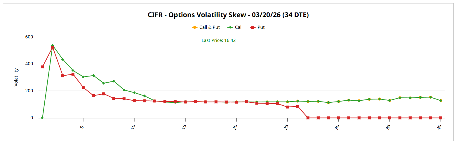 Looking at the Expected Move calculator, the Black-Scholes model is projecting a dispersion between $12.41 and $20.43 for the March 20 expiration date. Interestingly, Barchart’s Seasonal Returns notes that CIFR stock in its short history tends to enjoy a strong performance in March.