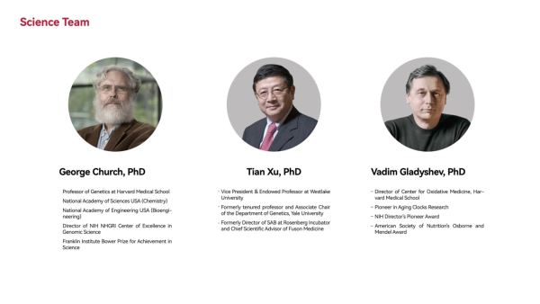 Scientific advisors of Regenerative Bio also include Dr. Vadim Gladyshev, Fellow of the National Academy of Sciences and a trailblazer in aging clock research, Dr. Tian Xu, previously C.N.H. LONG Professor of Genetics and the Special Advisor to President of Yale University, and currently Chair Professor of Genetics and Vice President at Westlake University, as well as a world-renowned expert on the mechanism of growth control and new genetic and biotech methods.Â
