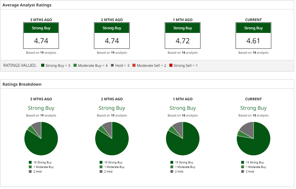 Analysts have an average rating of “Strong Buy” for FIVE stock with a mean target price of $222.11, indicating an upside potential of about 19% from current levels. Out of 18 analysts covering the stock, 14 have a “Strong Buy” rating, 1 has a “Moderate Buy” rating, and 3 have a “Hold” rating.