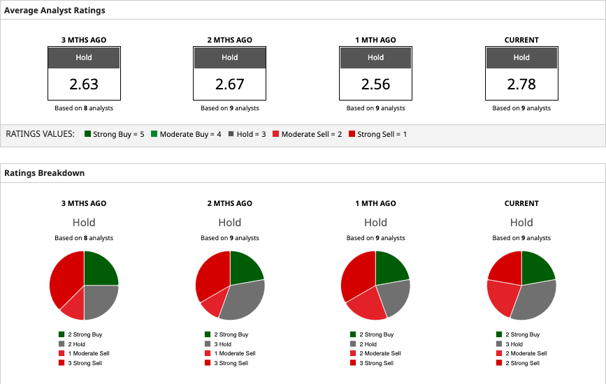 Out of the nine analysts covering SPCE, two recommend “strong buy,” three recommend “hold,” two recommend “moderate sell,” and two recommend “strong sell.”